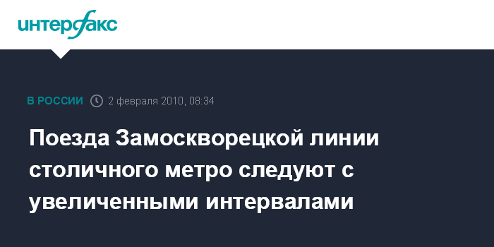 Москва. 2 февраля. INTERFAX.RU - Пассажиры Замоскворецкой линии столичного метрополитена испытывают сложности в утренние часы в связи с тем, что поезда ходят с увеличенными интервалами, передает корреспондент "Интерфакса".