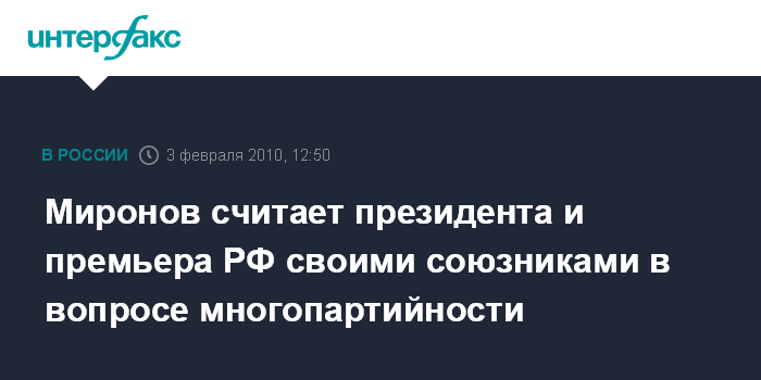 Миронов считает президента и премьера РФ своими союзниками в вопросе многопартийности