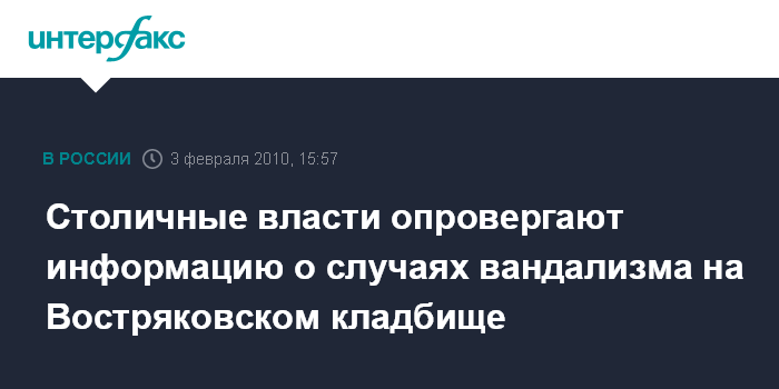 Столичные власти опровергают информацию о случаях вандализма на Востряковском кладбище