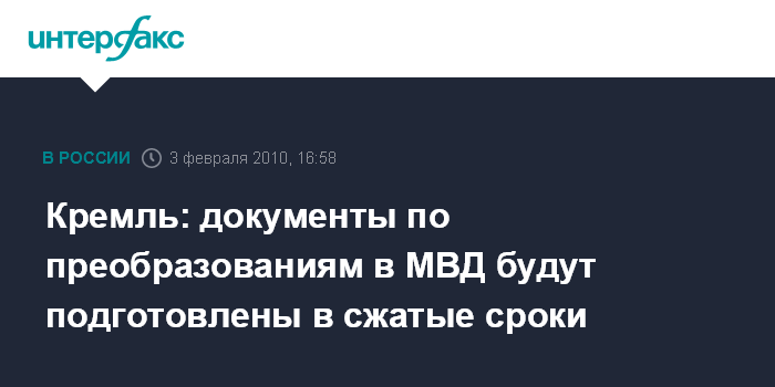 Кремль: документы по преобразованиям в МВД будут подготовлены в сжатые сроки