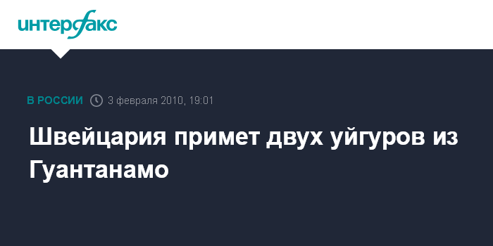 Женева. 3 февраля. INTERFAX.RU - Швейцария дала согласие принять у себя двух уйгуров - заключенных американской тюрьмы в Гуантанамо.