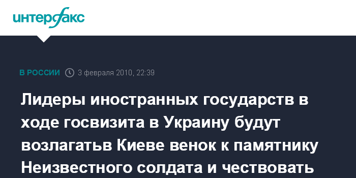 Лидеры иностранных государств в ходе госвизита в Украину будут возлагатьв Киеве венок к памятнику Неизвестного солдата и чествовать память жертвголодомора - указ