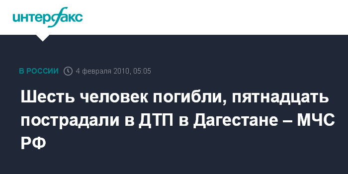 Шесть человек погибли, пятнадцать пострадали в ДТП в Дагестане – МЧС РФ