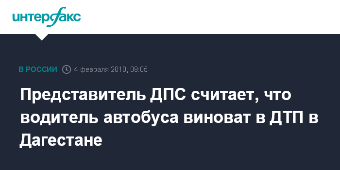 Москва. 4 февраля. INTERFAX.RU - Представитель ДПС заявил, что, скорее всего, в аварии на одной из трасс в Дагестане, приведшей к гибели шести человек, виноват водитель автобуса.
