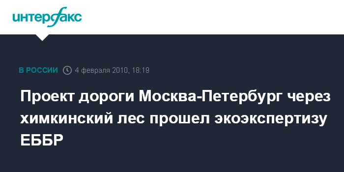 Проект дороги Москва-Петербург через химкинский лес прошел экоэкспертизу ЕББР