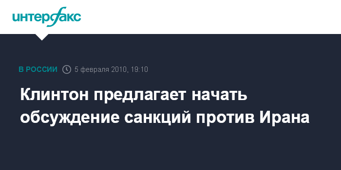 Вашингтон. 5 февраля. INTERFAX.RU - Госсекретарь США Хиллари Клинтон считает, что пришло время обсудить вопрос о новых санкциях в отношении Ирана.