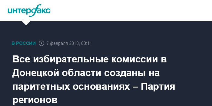 Киев. 7 февраля. ИНТЕРФАКС-УКРАИНА - Партия регионов опровергает заявление БЮТ о блокировании включения в состав комиссий в Донецкой области представителей от кандидата на пост президента Украины Юлии Тимошенко.