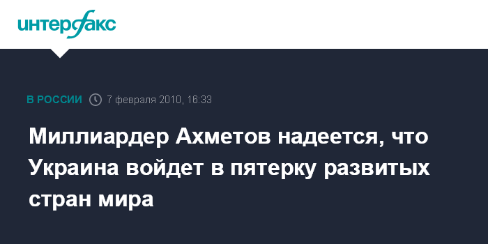Миллиардер Ахметов надеется, что Украина войдет в пятерку развитых стран мира