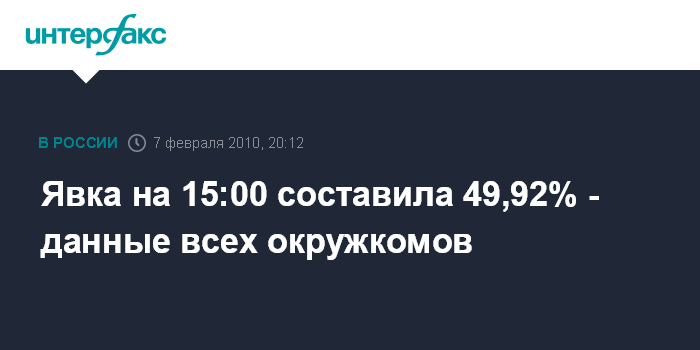 Киев. 7 февраля. INTERFAX.RU - По состоянию на 15:00 воскресенья явка украинских избирателей на президентских выборах составила 49,92%.