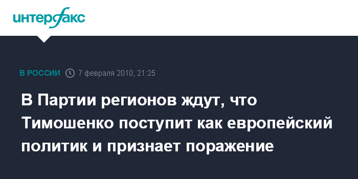 Киев. 7 февраля. INTERFAX.RU - Признание Юлией Тимошенко своего поражения на президентских выборах будет означать, что она является европейским политиком, считает заместитель лидера Партии регионов Борис Колесников.
