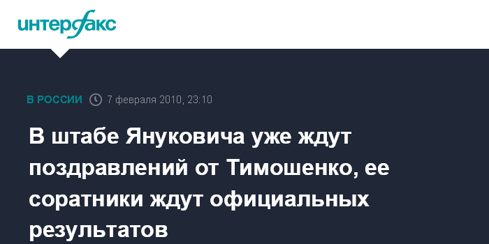 Киев. 7 февраля. INTERFAX.RU - В Партии регионов предлагают Юлии Тимошенко поздравить Виктора Януковича с победой на выборах президента Украины, при этом в БЮТ сомневаются в этой победе.