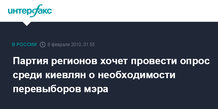 Киев. 8 февраля. ИНТЕРФАКС-УКРАИНА - Необходимость перевыборов киевского мэра должна быть изучена с учетом мнения людей, считают в Партии регионов.