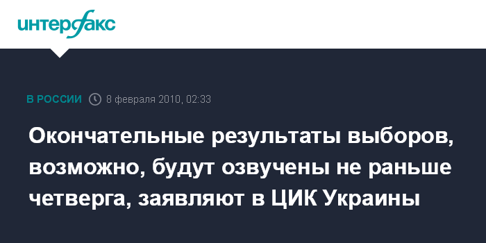 В то же время, он заверил, что окончательные официальные результаты второго тура выборов ЦИК установит в отведенные законом сроки - не позднее 17 февраля.