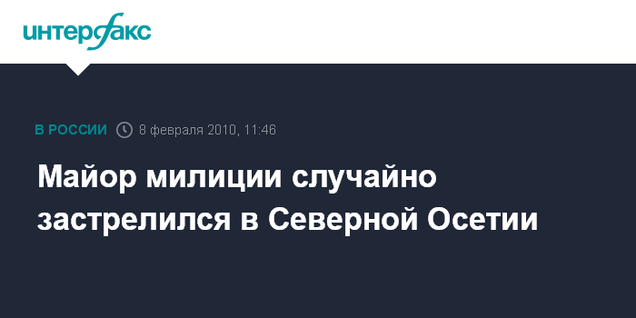 Москва. 8 февраля. INTERFAX.RU - В Северной Осетии офицер милиции получил смертельное ранение, когда в своем рабочем кабинете решил почистить табельное оружие.