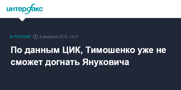 По данным ЦИК, Тимошенко уже не сможет догнать Януковича