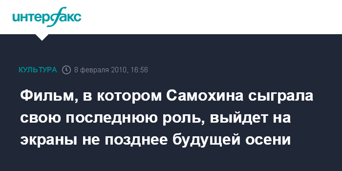 Фильм, в котором Самохина сыграла свою последнюю роль, выйдет на экраны не позднее будущей осени