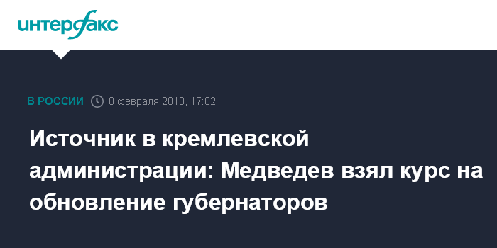 Москва. 8 февраля. INTERFAX.RU - Президент России Дмитрий Медведев проводит линию на обновление кадрового состава глав регионов, заявил источник в администрации главы государства.