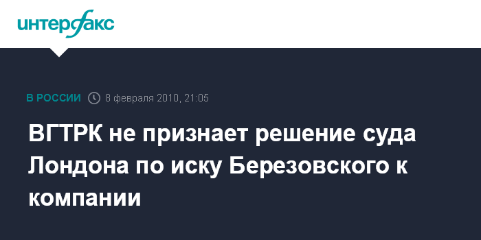 ВГТРК не признает решение суда Лондона по иску Березовского к компании