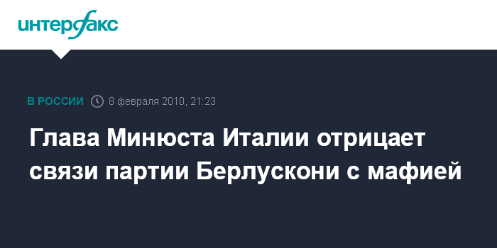 Рим. 8 февраля. INTERFAX.RU - Министр юстиции Италии Анджелино Альфано опроверг сообщения, согласно которым партия "Вперед Италия", созданная в 1990-х годах Сильвио Берлускони, якобы была связана с сицилийской мафией, пишет газета Corriere della Sera.