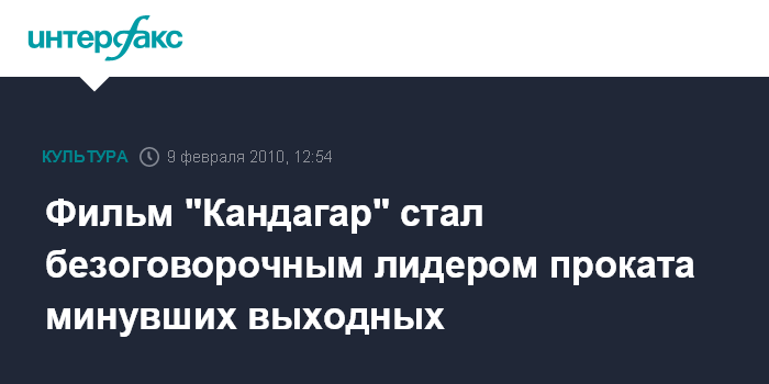 Москва. 9 февраля. INTERFAX.RU - Фильм "Кандагар", проект телеканала "Россия1", стала безоговорочным лидером проката минувших выходных.
