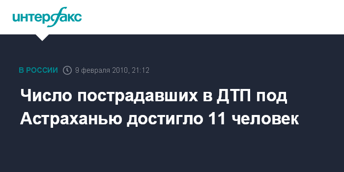 Ростов-на-Дону. 9 февраля. INTERFAX.RU - Количество пострадавших при столкновении электропоезда с автомобилем ВАЗ-21099 в Астраханской области возросло с шести до 11 человек.