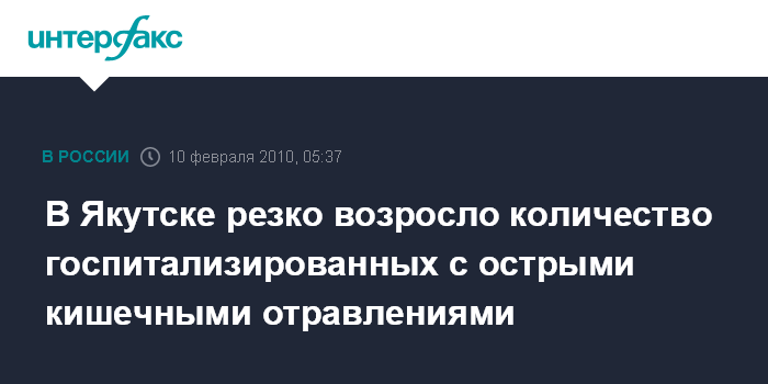Якутск. 10 февраля. ИНТЕРФАКС-ДАЛЬНИЙ ВОСТОК - Количество госпитализированных с острыми кишечными отравлениями в больницы Якутска за последние сутки возросло на 116 человек, сообщили агентству "Интерфакс-Дальний Восток" в городском управлении здравоохранения.