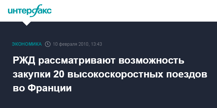 РЖД рассматривают возможность закупки 20 высокоскоростных поездов во Франции
