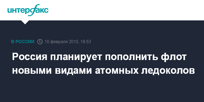 Москва. 10 февраля. INTERFAX.RU - Атомный ледокольный флот РФ вскоре может пополниться крупным судном нового типа. Как говорится в материалах ФГУ "Росморречфлот", в 2010 году начнется строительство универсального атомного двухосадочного ледокола нового поколения мощностью около 60 МВт.
