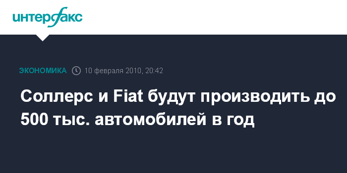 Соллерс и Fiat будут производить до 500 тыс. автомобилей в год