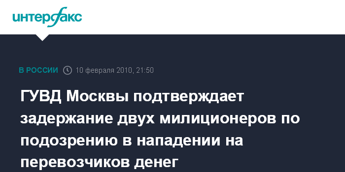 ГУВД Москвы подтверждает задержание двух милиционеров по подозрению в нападении на перевозчиков денег