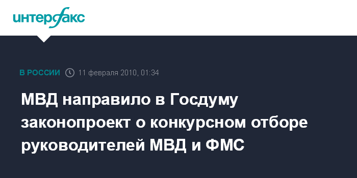 МВД направило в Госдуму законопроект о конкурсном отборе руководителей МВД и ФМС