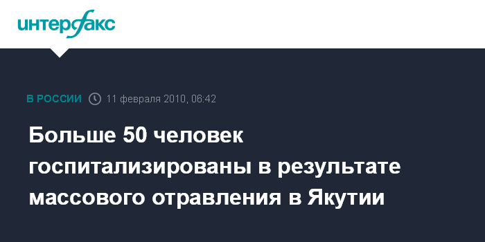 Больше 50 человек госпитализированы в результате массового отравления в Якутии