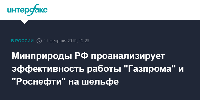 Минприроды РФ проанализирует эффективность работы "Газпрома" и "Роснефти" на шельфе