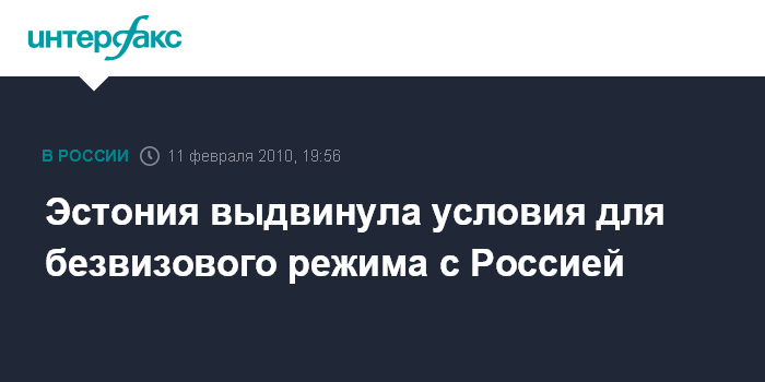 Таллин. 11 февраля. INTERFAX.RU - Министр иностранных дел Эстонии Урмас Паэт (Urmas Paet) озвучил условия, которые, по его мнению, необходимы для введения безвизового режима с Россией.