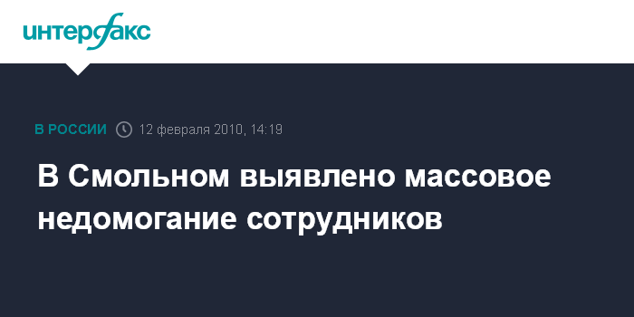 Источник в администрации города рассказал "Интерфаксу", что несколько сотрудников Смольного на днях почувствовали недомогание. В частности, 10 человек обратились в поликлиники, одна женщина - в инфекционную больницу им. Боткина.