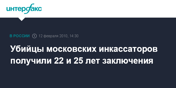 Убийцы московских инкассаторов получили 22 и 25 лет заключения