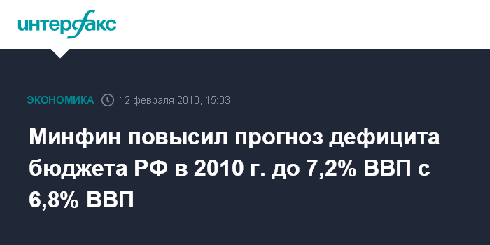 Минфин повысил прогноз дефицита бюджета РФ в 2010 г. до 7,2% ВВП с 6,8% ВВП