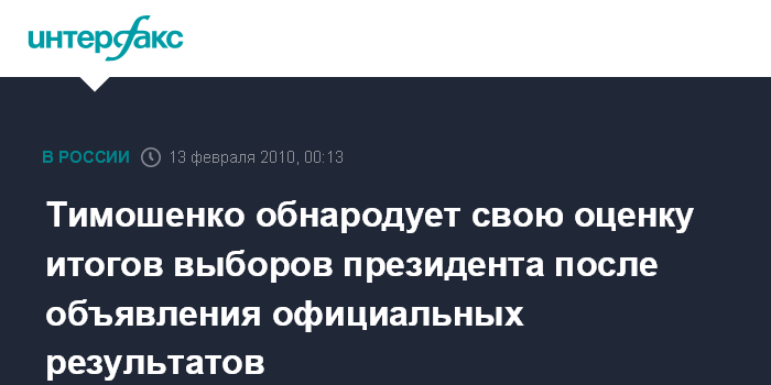 Ю.Тимошенко еще не делала заявлений о президентских выборах после второго тура голосования. Пока кандидат ограничилась комментарием экзит-полов, сообщив, что считает преждевременным давать оценку выборов на их основании.