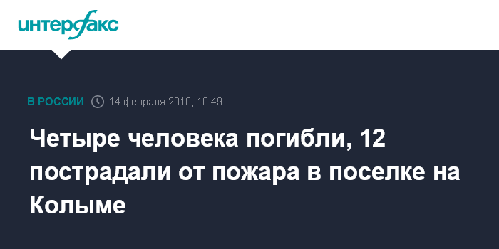 Якутск. 14 февраля. INTERFAX.RU - Пожар в жилом доме произошел в поселке Черский - районном центре на северо-востоке Якутии: погибли четыре человека, 12 пострадали. Сообщение о пожаре в одной из квартир 4-х этажного жилого дома в поселке Черский поступило на пульт службы спасения "01" в воскресенье в 06:40 местного времени (22:40 мск), сообщает территориальное управление МЧС. "Прибывшие пожарные эвакуировали из здания 38 человек и не допустили распространение огня, спасли жилой дом", - отмечают в МЧС.
