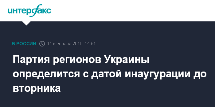 Киев. 14 февраля. INTERFAX.RU - Дата инаугурации новоизбранного президента Украины будет известна до вторника, сообщил заместитель лидера Партии регионов Борис Колесников.