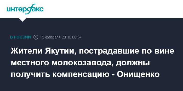 Жители Якутии, пострадавшие по вине местного молокозавода, должны получить компенсацию - Онищенко