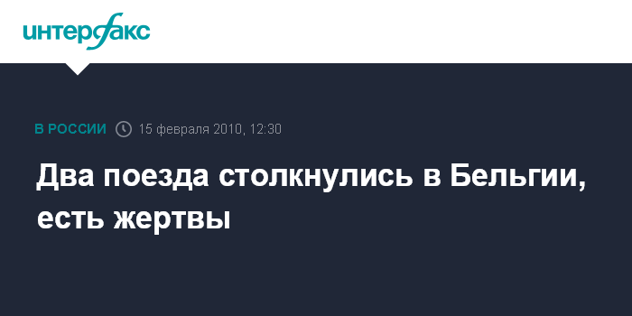Москва. 15 февраля. INTERFAX.RU - Столкновение двух пассажирских поездов произошло в понедельник утром близ Брюсселя, сообщает бельгийское телевидение.