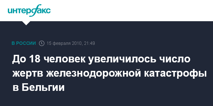 Брюссель. 15 февраля. INTERFAX.RU - Жертвами железнодорожной катастрофы, которая произошла в понедельник близ Брюсселя, стали 18 человек, сообщает интернет-сайт бельгийской вечерней газеты "Суар".