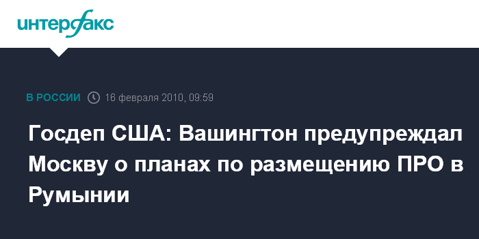 Госдеп США: Вашингтон предупреждал Москву о планах по размещению ПРО в Румынии