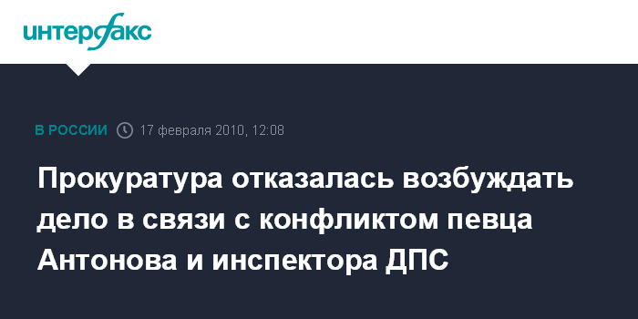 Прокуратура отказалась возбуждать дело в связи с конфликтом певца Антонова и инспектора ДПС