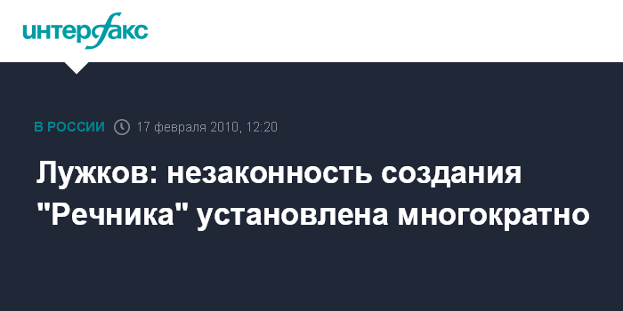 Москва. 17 февраля. INTERFAX.RU – Мэр Москвы Юрий Лужков заявляет, что незаконность создания садового товарищества (СТ) "Речник", а затем садового некоммерческого партнерства (СНП) "Речник" была установлена многократно.