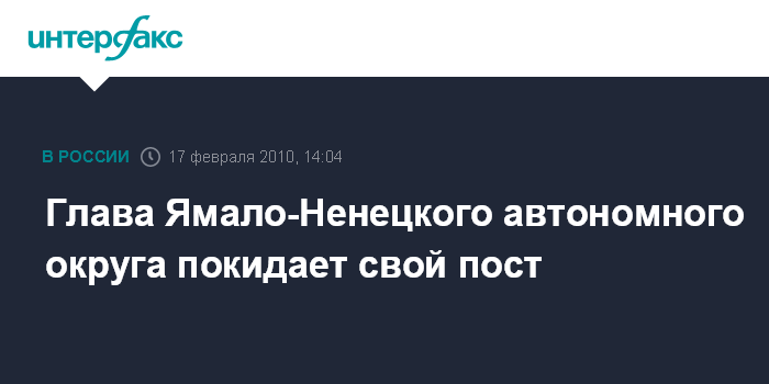 Глава Ямало-Ненецкого автономного округа покидает свой пост