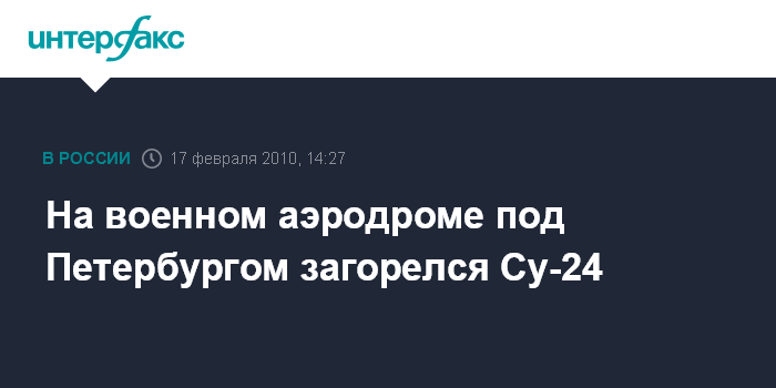 Санкт-Петербург. 17 февраля. INTERFAX.RU - В Пушкинском районе Петербурга на военном аэродроме в среду днем произошло возгорание фронтового бомбардировщика Су-24, сообщил "Интерфаксу" источник в силовых структурах.