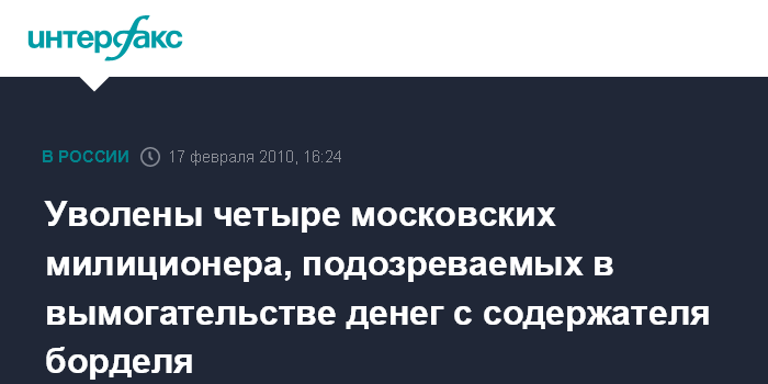 Уволены четыре московских милиционера, подозреваемых в вымогательстве денег с содержателя борделя