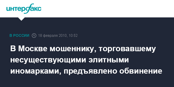 Москва. 18 февраля. INTERFAX.RU – Столичные милиционеры завершили расследование уголовного дела в отношении мошенника, который похитил около 5 млн рублей под видом продавца элитных иномарок, сообщил "Интерфаксу" источник в правоохранительных органах города в четверг.